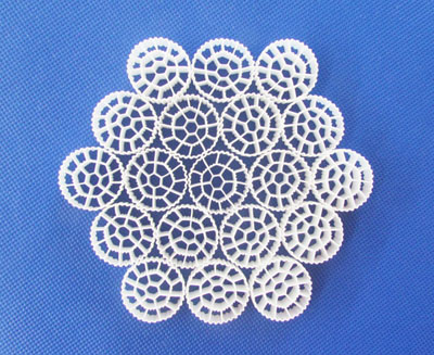 特殊的結(jié)構(gòu),空心填料結(jié)構(gòu)為內(nèi)外共有三層空心圓,每個(gè)圓內(nèi)有1條棱,外有36條棱,經(jīng)多次研究開發(fā)成功,采用一次成型。