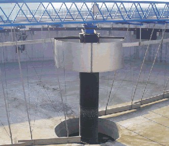 刮泥機,是一種排泥設備。組成部分:刮泥機由桁車、刮泥耙、撇渣板、驅(qū)動裝置和自控柜等到組成。分類:刮泥機主要有中心傳動刮泥機、周邊傳動刮泥機。中心傳動刮泥機主要由工作橋、傳動裝置、穩(wěn)流筒、傳動軸、刮臂、刮泥板等組成。該機設有橫跨池子的固定平臺,工作時其整機載荷都作用在工作橋中心;污水經(jīng)池中心穩(wěn)流筒均流到四周。隨著過流面積增大而流速降低,污水中的沉淀物沉淀于池底,刮泥機將沉淀的污泥刮集到中心集泥坑中,利用水壓將其從污泥管中排出。該機結構簡單,傳動平穩(wěn),動力消耗低,刮泥效果好,是一種理想的排泥設備;周邊傳動刮泥機用于城市污水處理廠、自來水廠以及工業(yè)廢水處理中輻流式圓形沉淀池和濃縮池中,排除沉降在池底的污泥和撇除池面的浮渣。應用領域:刮泥機主要應用于鋼鐵、冶金、礦山、水處理等行業(yè)。